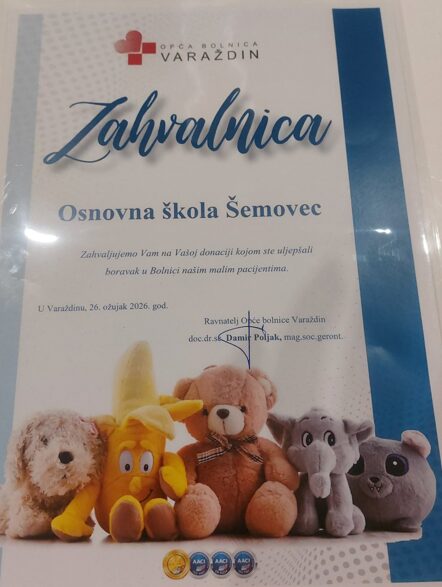 U Osnovnoj školi Šemovec provodila se humanitarna akcija prikupljanja plišanih igračaka za djecu na Odjelu pedijatrije Županijske bolnice Varaždin.